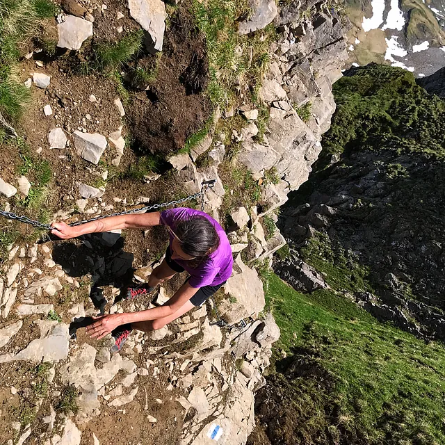 Liebe Freunde des leichtsinnigen Laufens in dramatischem Gelände: Fehltritte, Ausrutscher oder andere Dummheiten darf man sich in diesem Fall einfach nicht leisten. Gerade dort, wo ein Sturz definitiv zum Absturz führt, ist besonders hohe Konzentration gefragt. Lediglich das eigens dafür geschulte, versierte Laufen im Gelände kann hier noch Rettung bieten … treibt unterwegs keinen Unfug!